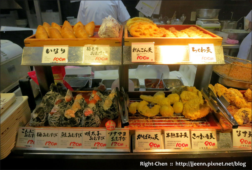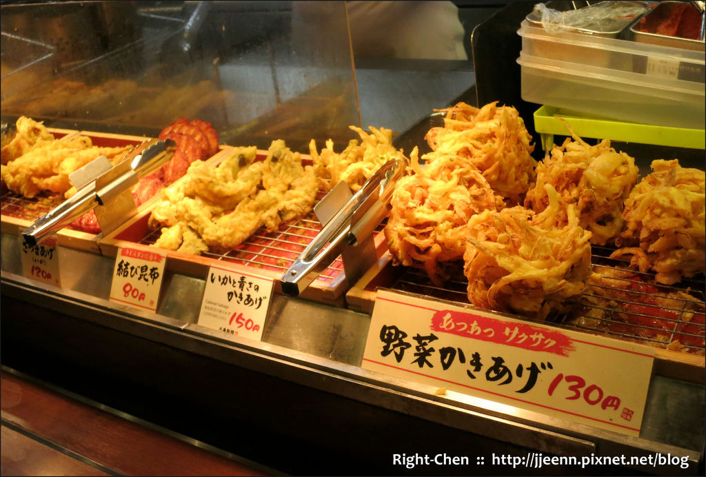 ▲ 架上的炸物 (天ぷら)。看起來都十分誘人。