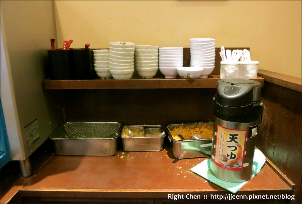 ▲ 配料台,蔥花、天婦羅花 自行酌量使用。