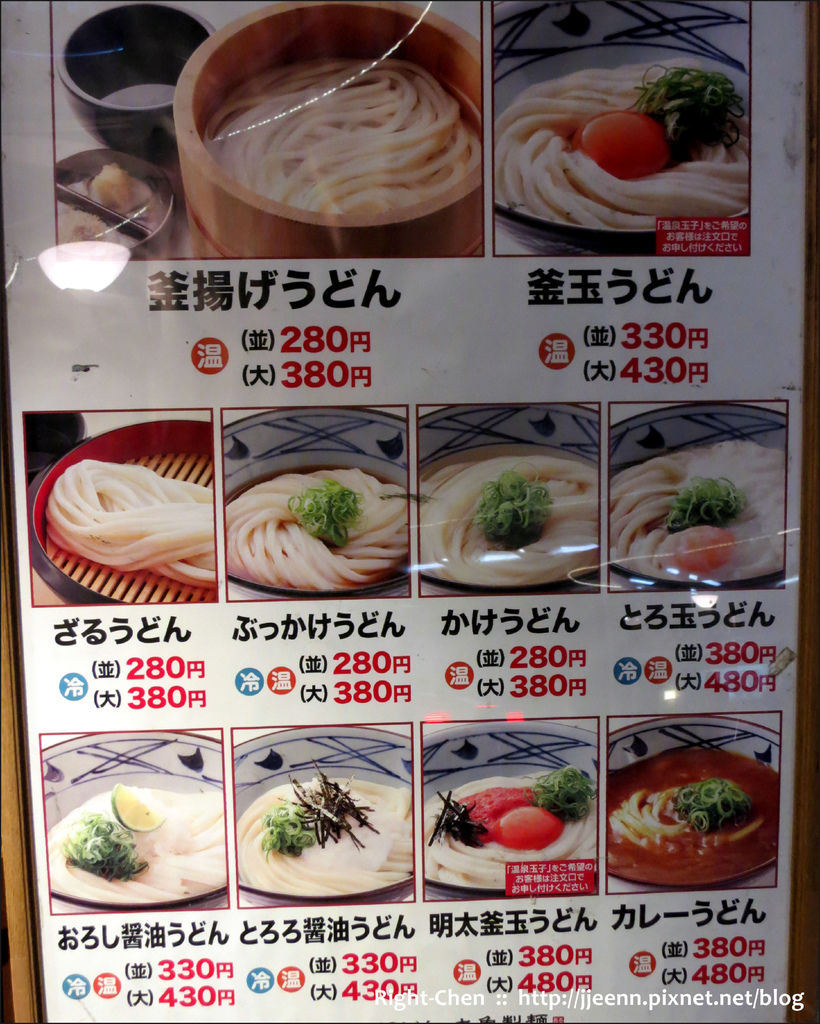 ▲ 丸龜製麵 菜單。 目前價格有調漲,請見官網。