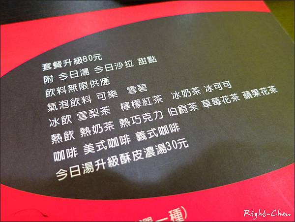 有附上湯. 沙拉. 甜點. 以及飲料無限量供應;