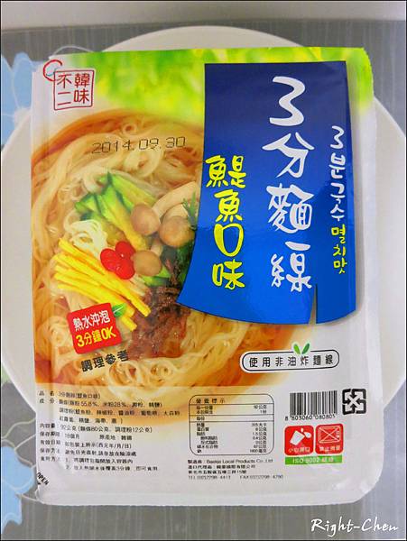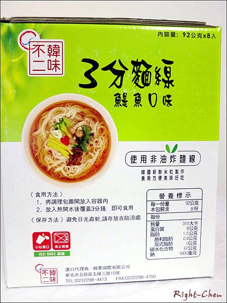 ▲ 包裝上有寫此麵線為韓國新鮮米粒製作 (麵粉占55.8%, 米粉占28%),