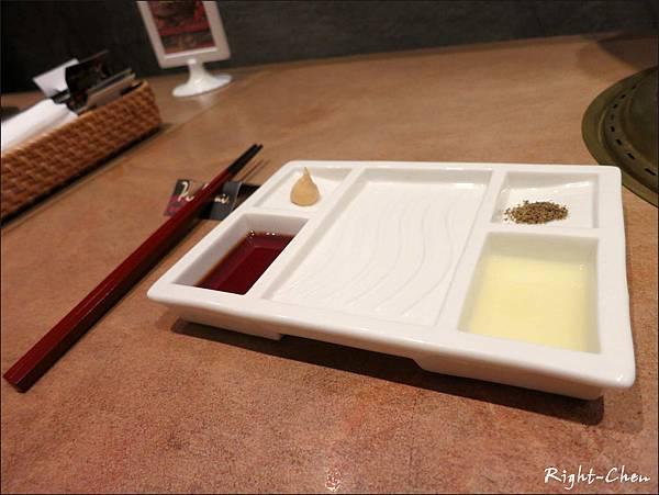 四區順時數來分別為特調胡椒粉、檸檬汁、烤肉醬和蒜泥,