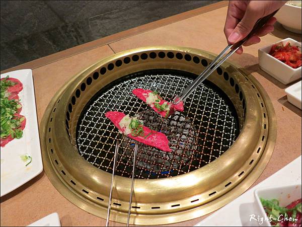 貼心的店員在上盤後仔細介紹了烤法,也示範了兩片。
